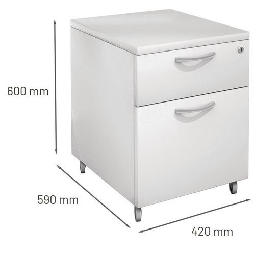 | Produktname | Rollcontainer, Werkstoff: Melaminbeschichtet, Gesamthöhe: 60 cm, Anzahl Schubladen: 2, Gesamtbreite: 42 cm |