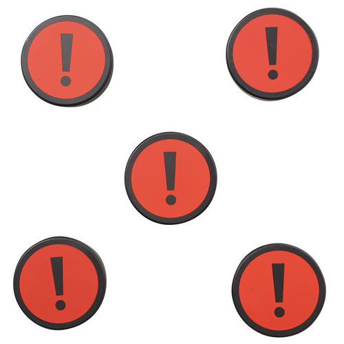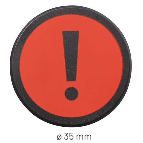 | Produktname | Runder Magnet mit Symbol „Ausrufezeichen“, Typ: Ausrufezeichen, Farbe: Rot, Ø: 35 mm |
