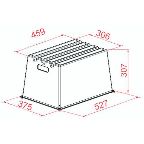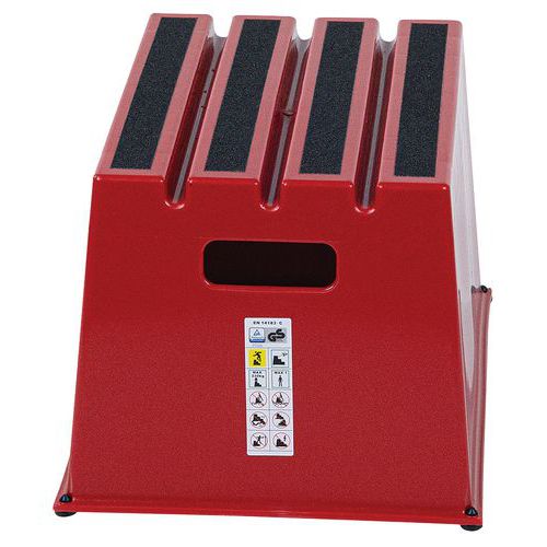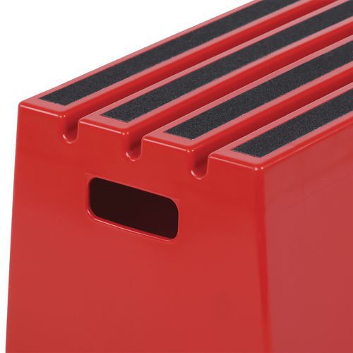 Einfacher und komfortabler Tritthocker. Breite rutschfeste Stufen. Gesicherte Schleifbänder. Müheloses Anheben mit den Griffen. Einteilig, hohe Stabilität. Tappetino in gomma antiscivolo posizionato sotto ogni angolo del gradino. Max. Belastung (kg) : 230 kg Kundengarantie : 10 Jahre