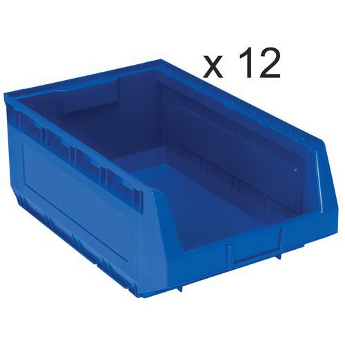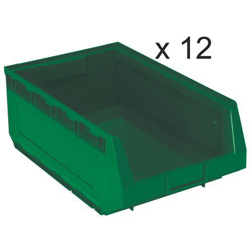 Satz mit 12 Sichtlagerkästen Kangourou - Länge 485 mm - 30 L - Manutan Expert
