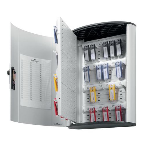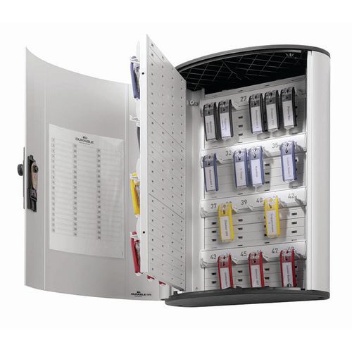 Das Fassungsvermögen des Modells für 36 Schlüssel lässt sich bis auf 54 Schlüssel erweitern, indem zusätzliche Leisten an der Rückseite der schwenkbaren Wand angebracht werden.