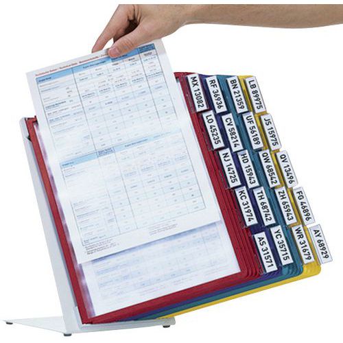 | Produktname | Schreibtischhalterung Vario - 20 verschiedenfarbige Sichttafeln A4, Haltermaterial: Stahl, Breite: 34 cm |
