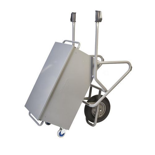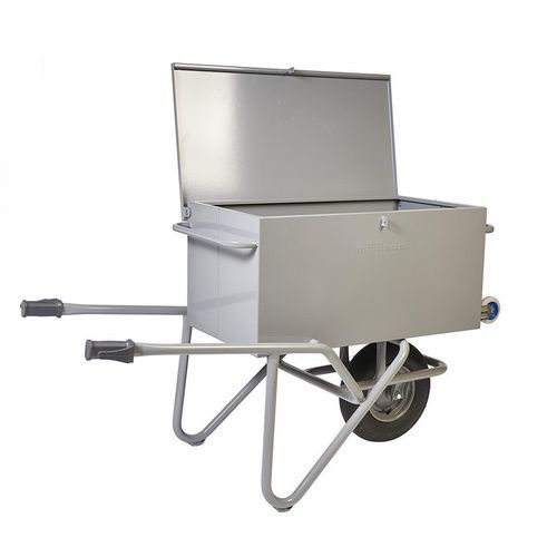 Schubkarre mit Doppeldeckel an Scharnieren.