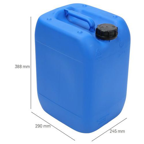 Kunststoff-Kanister, zugelassen für den Warentransport Hohe Widerstandsfähigkeit gegen Stürze, hydraulischen Druck und Stapelung Die absolute Luftdichtigkeit der Verpackung wurde durch einen Luftdruck-Test bestätigt Transport- und Lagerkanister mit hohem Komfort durch oberen Griff Große Öffnung mit Schraubverschluss, Auslaufrohr und Öffnungsanzeige