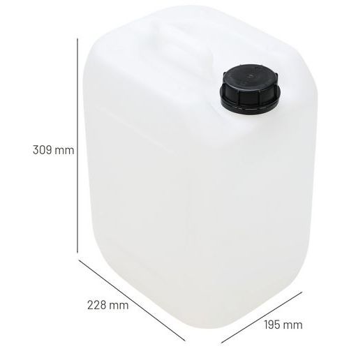 Kunststoff-Kanister, zugelassen für den Warentransport Hohe Widerstandsfähigkeit gegen Stürze, hydraulischen Druck und Stapelung Die absolute Luftdichtigkeit der Verpackung wurde durch einen Luftdruck-Test bestätigt Transport- und Lagerkanister mit hohem Komfort durch oberen Griff Große Öffnung mit Schraubverschluss, Auslaufrohr und Öffnungsanzeige