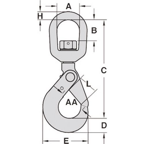 Sicherheitshaken mit automatischer Verriegelung und Wirbel – Tragkraft 2000 bis 12.800 kg Sicherheitshaken mit automatischer Verriegelung und Wirbel – Tragkraft 2000 bis 12.800 kg