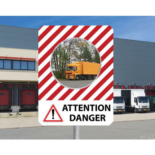 Spiegel mit Sicherheitshinweis INFOMIR, Überwachungsradius: 12 m, Form: Rund, Sicht: 90 °
