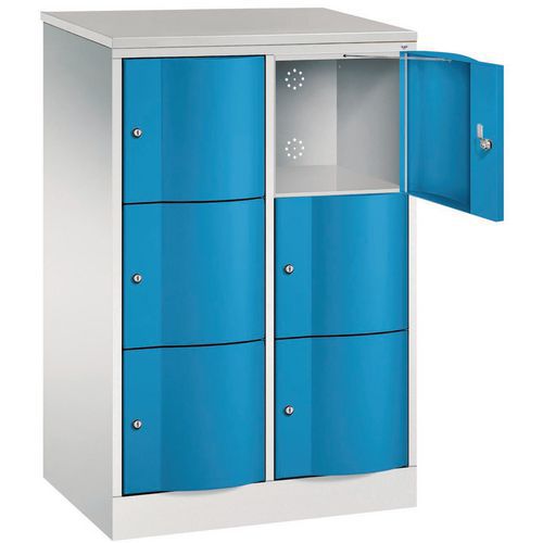 Spind mit 6 und 10 Fächern und vandalismussicheren Türen - 2 Säulen, Breite 380 mm - auf Sockel - CP