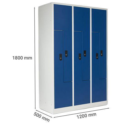 Spind mit Metalltüren in L-Form, Typ Garderobe: L förmige Tür, Werkstoff: Stahl, Anzahl Fächer/Abteil: 2