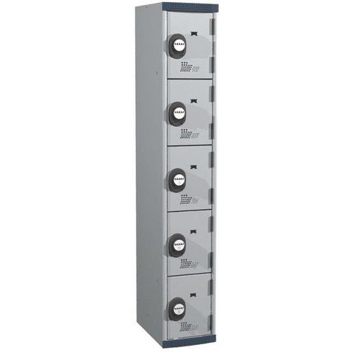 | Produktname | Spind Seamline Optimum® mit 5 Fächern - 1 Säule, Breite 300 mm - auf Sockel - Acial |