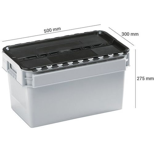 | Produktname | Standardbehälter mit integriertem Deckel, Gesamtinhalt: 25 L, Gesamthöhe: 275 mm, Gesamtbreite: 300 mm |