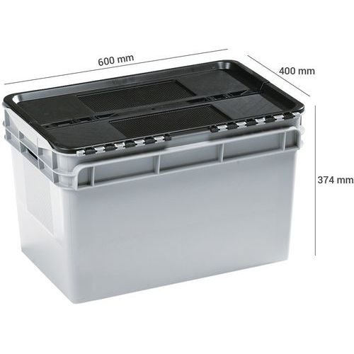 | Produktname | Standardbehälter mit integriertem Deckel - Länge 400 mm - 45 bis 60 L, Gesamtinhalt: 60 L, Gesamthöhe: 374 mm |