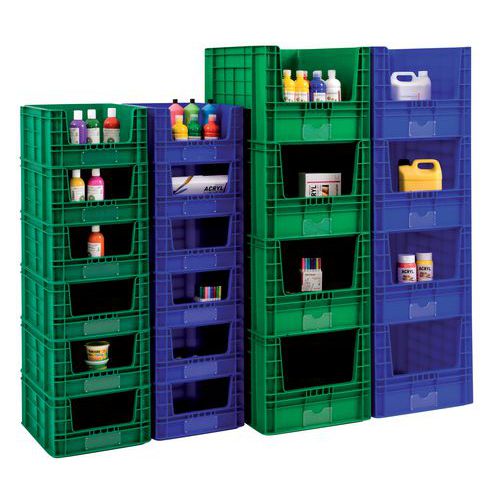 Stapelbare Kisten mit Öffnung - Länge 490 und 600 mm - 36 und 97 l