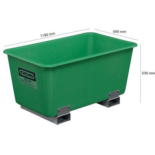 | Produktname | Stapelbarer Behälter mit Staplertaschen - Länge 1180 mm - 300 L - Cemo, Gesamtinhalt: 300 L |