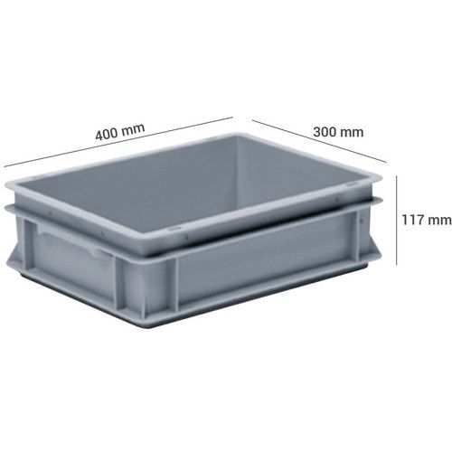 Stapelbarer Euronorm-Behälter grau RAKO - 10 bis 26 L, Gesamtinhalt: 10 L, Stapelbar: ja, Gesamthöhe: 117 mm