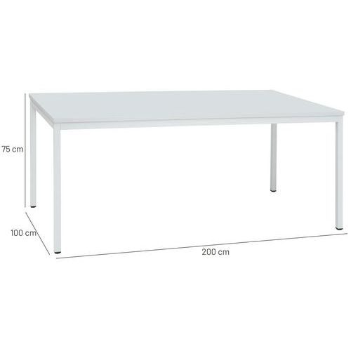 | Produktname | Tisch Basic-Line, Länge: 200 cm, Tiefe: 100 cm, Material Platte: Melamin, Gestellfarbe: Hellgrau |