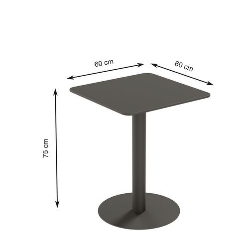 Dieser runde Tisch für den Außenbereich eignet sich ideal für Terrassen. Stahlrohr mit pulverbeschichteter schwarzer, matter Oberfläche zum Einsatz im Freien. Rohr und Basis sind UV-beständig. Rostfreie Schrauben. Schmutzabweisende, kratz- und stoßfeste HPL-Platte. Für intensive Nutzung geeignet, widersteht Feuchtigkeit. Viene da assemblare. Montage : Zum Aufbauen
