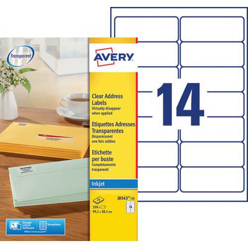 Transparentes Etikett: Nach dem Aufkleben auf den Umschlag bleibt nur der Text sichtbar.