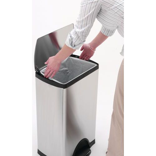 Rechteckiges Modell mit Fußpedal. Mit Inneneimer aus Kunststoff. Kundengarantie : 3 Jahre