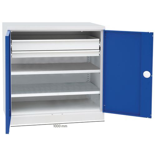 | Produktname | Unterschrank mit Fachböden und Schubladen - Manutan Expert, Max. Belastung: 120 kg, Werkstoff: Stahl |