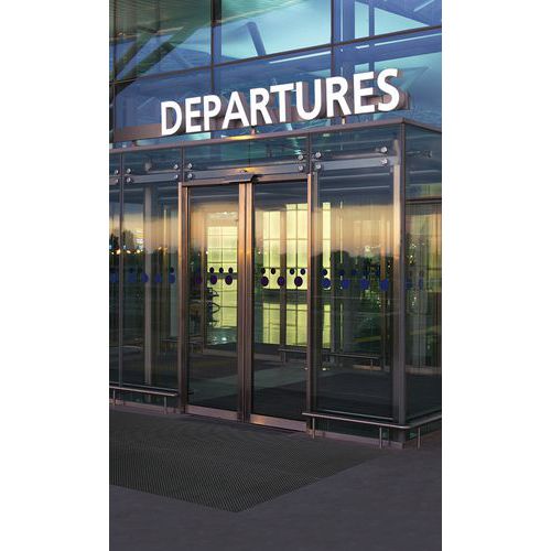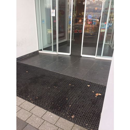 Kleine Drainagelöcher gemäß EU-Normen für öffentliche Eingangsbereiche, glatte Oberfläche für den Zugang mit Radfahrzeugen.