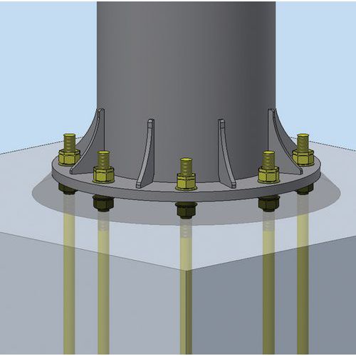 Für die Verankerung eines Säulenschwenkkrans auf einem Betonsockel.