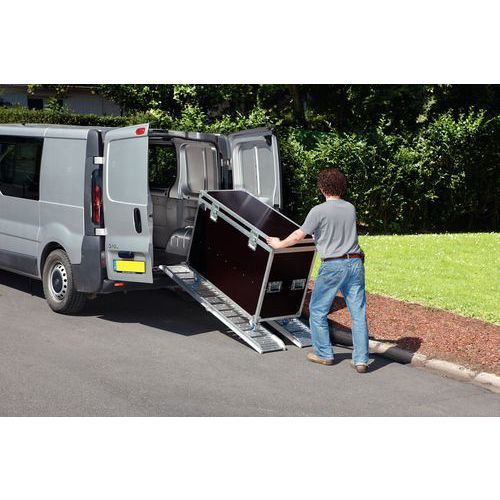 | Produktname | Verladerampe, Werkstoff: Aluminium, Max. Belastung: 200 kg, Gesamtbreite: 295 mm, Gesamtlänge: 1830 mm |
