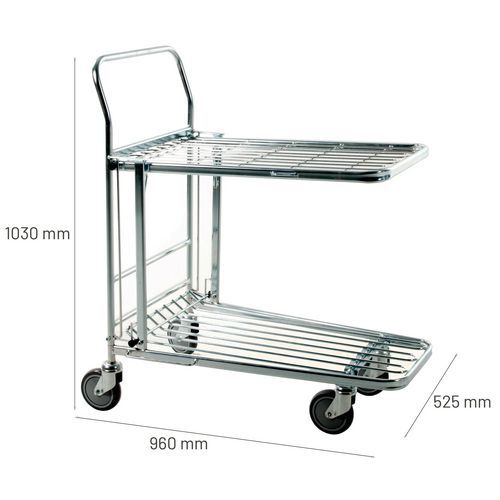 | Produktname | Wagen aus Stahldraht, Lenkrolle Ø: 125 mm, Max. Belastung: 300 kg, Gesamthöhe: 1030 mm, Gesamtbreite: 525 mm |