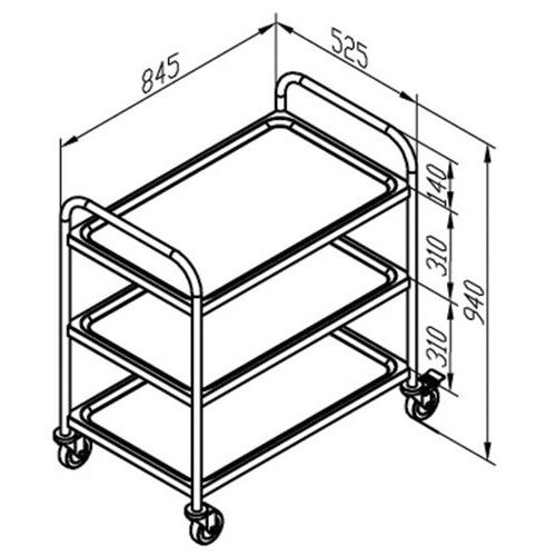 | Produktname | Wagen mit Böden aus Edelstahl - 3 Böden - Tragkraft 150 kg, Max. Belastung: 150 kg, Gesamthöhe: 940 mm |