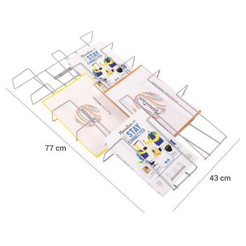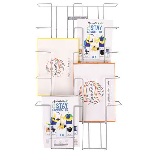 | Produktname | Wandhalter für Prospekte, Anzahl Fächer: 5, Farbe: Grau, Gesamtbreite: 43 cm, Gesamthöhe: 77 cm |