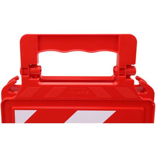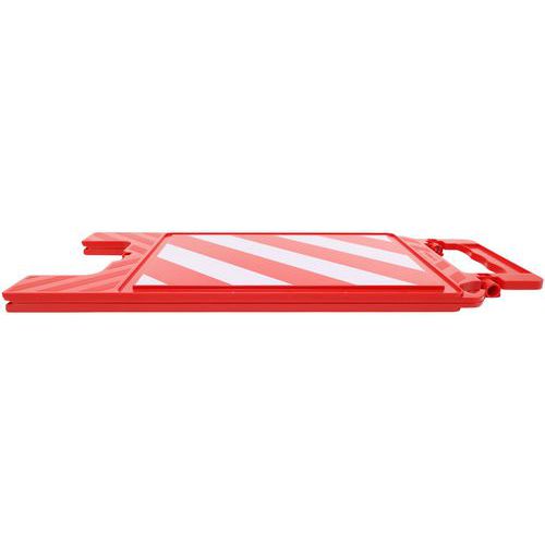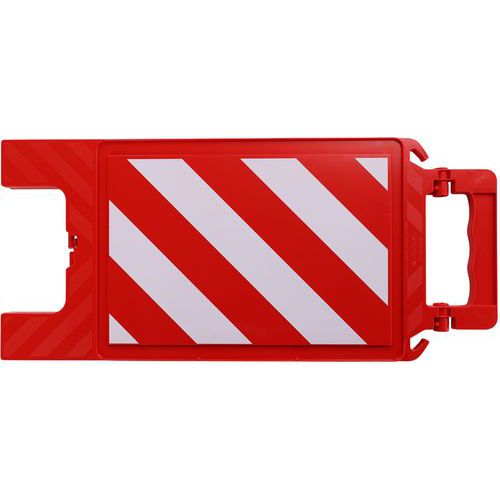 | Produktname | Warnschild-Aufsteller gestreift, Farbe: Rot, Höhe: 600 mm, Breite: 275 mm, Stärke eingeklappt: 23 mm |