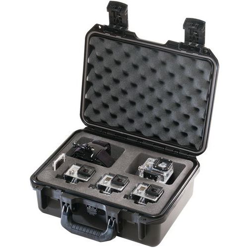 Kleiner wasser- und staubdichter sowie stoßbeständiger Schutzkoffer Peli Case IM2100 in Schwarz.
