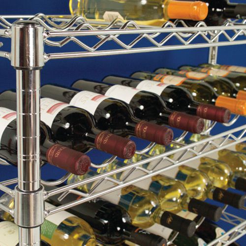 Solides, stabiles Weinregal. Hochwertige Verarbeitung aus Chromnickelstahl. Tragkraft: 9 Flaschen pro Ebene. Höhenverstellbares Gitterregal. Optimale Belüftung.