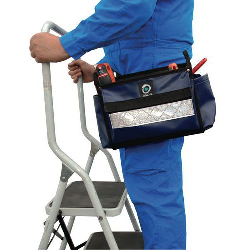 | Produktname | Werkzeugtasche für Arbeiten in der Höhe, Max. Belastung: 15 kg, Gesamthöhe: 210 mm, Gesamtbreite: 100 mm |