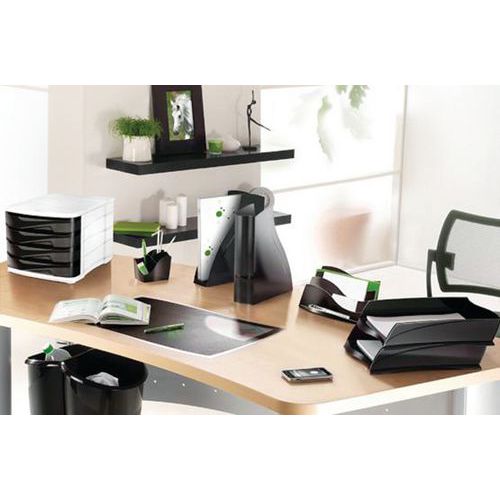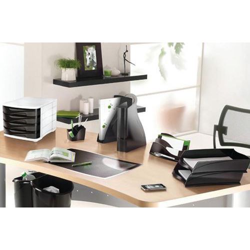 | Produktname | Zeitschriftenhalter - 100 % recycelt - CEP, Werkstoff: Polystyrol, Farbe: Schwarz, Gesamtbreite: 27.8 cm |