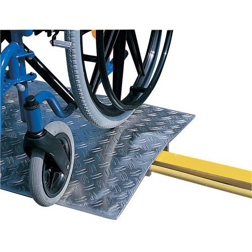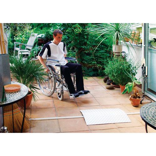 | Produktname | Zugangsrampe, Max. Belastung: 300 kg, Gesamtbreite: 700 mm, Gesamtlänge: 500 mm, Max. Höhe Unterschied: 35 mm |