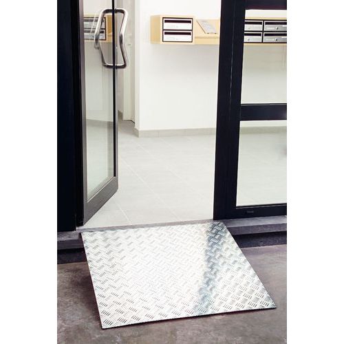 | Produktname | Zugangsrampe, Max. Belastung: 200 kg, Gesamtbreite: 800 mm, Gesamtlänge: 800 mm, Mit Rand: nein |