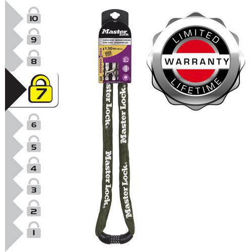 | Produktname | Diebstahlsicherungskette 8028EURD - Master Lock, Ø: 8 mm, Länge: 1.5 m |