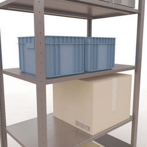 Robustes, beidseitig zugängliches Lagerregal mit verzinkter Oberfläche, extrem witterungsbeständig in feuchten Umgebungen Auf den durchgehenden Stahlfachböden können Waren in vielen unterschiedlichen Größen gelagert werden Einfach und schnell durch Ineinanderstecken aufzubauendes Industrieregal, kein spezielles Werkzeug erforderlich Einfach erweiterbar mit einem oder mehreren Anbauelementen Lochabstand: 5 mm Höhe des ersten Perforationslochs: 22,5 mm