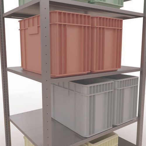 Robustes, beidseitig zugängliches Lagerregal mit verzinkter Oberfläche, extrem witterungsbeständig in feuchten Umgebungen Auf den durchgehenden Stahlfachböden können Waren in vielen unterschiedlichen Größen gelagert werden Einfach und schnell durch Ineinanderstecken aufzubauendes Industrieregal, kein spezielles Werkzeug erforderlich Einfach erweiterbar mit einem oder mehreren Anbauelementen Lochabstand: 5 mm Höhe des ersten Perforationslochs: 22,5 mm