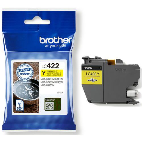 Druckerkartusche LC422, druckt bis zu 550 Seiten gemäß ISO/IEC 24711 Sorgfältig auf optimale Druckqualität getestet, für Zeit- und Geldersparnis Druckerkartusche Brother für hohe Qualität Beständig gegen Farbverblassen, garantiert zuverlässige, hochwertige Drucke über die gesamte Nutzungsdauer des Druckers Perfekt abgestimmte Tinte sorgt für optimale Funktionalität Kundengarantie : Rechtsgarantie