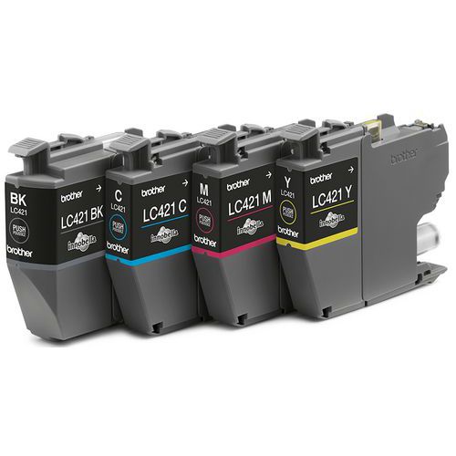 Druckerkartusche mit Standard-Kapazität für bis zu 200 Blatt Sorgfältig auf perfekte Druckqualität getestet für Zeit- und Geldersparnis Die Druckerkartuschen Brother LC421 tragen zur Garantie Ihres Druckers bei Verblasst nicht und garantiert perfekte Druckergebnisse Perfekt ausgewogene Tinte für einen optimalen Druckerbetrieb