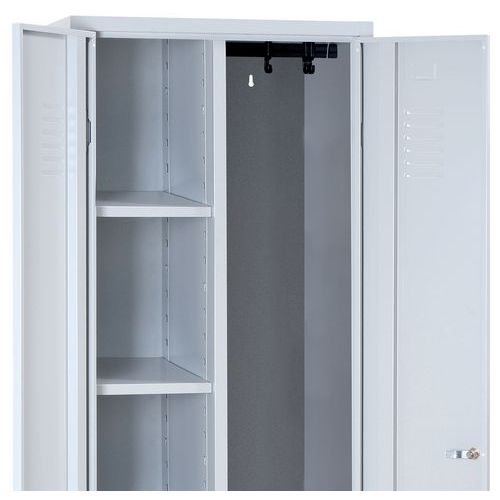 | Produktname | Einteiliger Materialschrank - Manutan Expert, Typ Garderobe: Mit Ablagen und Kleiderschrank, Werkstoff: Stahl |