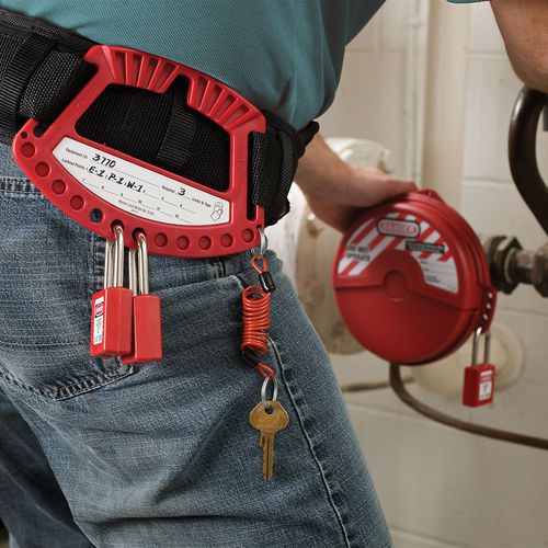 Der Verriegelungsgriff oder die Transportvorrichtung für Sicherheitsvorhängeschlösser Master Lock S125 ermöglicht den Transport und die Verwahrung von Sicherheitsvorhängeschlössern in der Nähe der Verriegelungsstelle.