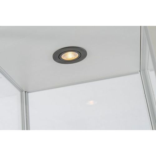 4 höhenverstellbare Regalböden mit einer Tragkraft von jeweils 10 kg Mit verstellbaren Stellfüßen zur Justierung Ausstellungsvitrine wird montiert geliefert