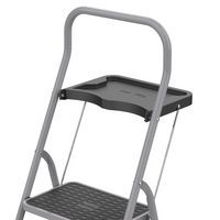 Sicherer Halt dank 61 cm hohem Geländer Sicherheit durch die integrierte Fußstütze mit Kippsicherungssystem Stabil dank rutschfester Standfüße, die nicht verloren gehen Praktisch, mit XL-Werkzeughalter Bequem dank XXL-Stufen mit rutschfester Beschichtung