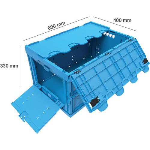 Klappbehälter - Länge 600 mm - 60 bis 68 L, Gesamtinhalt: 61 L, Gesamthöhe: 330 mm, Gesamtbreite: 400 mm