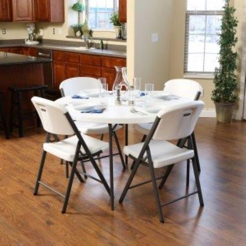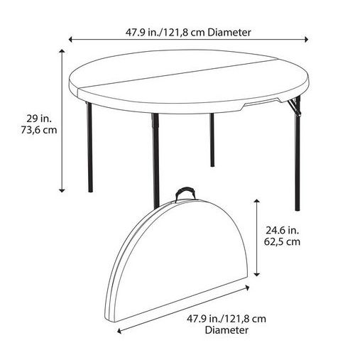 | Produktname | Klapptisch LIFETIME, rund, 122 cm, 2-fach klappbar, Kapazität (Anzahl Leute): 4, Tischplatte Farbe: Weiß |