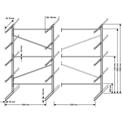 Kragarmregal Combi-Lang - Ein-und doppelseitig - Ohne Anschlag
