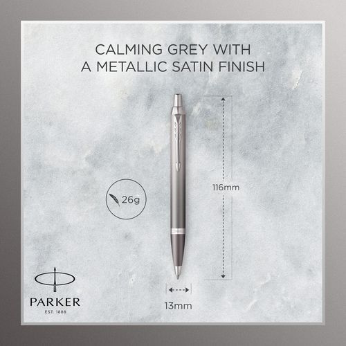 - Kugelschreiber Parker IM Writing Rituals in Grau mit verchromten Details, mittlerer Spitze und blauer Tinte